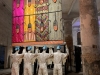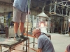 Finally, the heads of the mannequins carrying hard hats made of glass, contemplate the question of who should be in charge of protecting our peaceful coexistence in the future? We might draw inspiration from shared histories and gain strength through prayers, as we look at outlines of the Lamassu, the Buraq, the Garuda, the Pixiu, and the Venetian winged Lion laser-cut leather harnesses of the construction helmets–these five hybrid mythical creatures connect humanity’s shared yearning for protection and power across religions, cultures, and geographies. The blue glass helmets draw attention to the pressing social, political, humanitarian, and environmental crises along the Silk Roads of today. The brittleness of the glass material points to the fragility of our global institutions in charge of protecting the world’s natural and cultural heritage, as well as human and non-human rights.